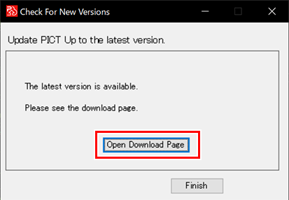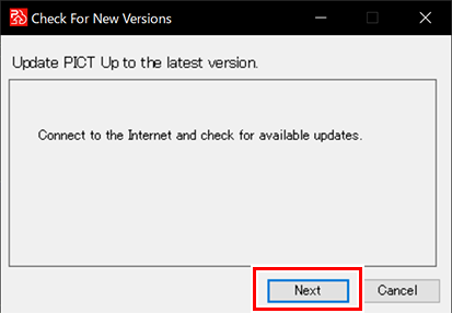 - From the [Start] menu, Click [All apps] - [PICT Up] - [Check for new versions].