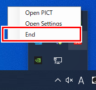- Click [End] from the task tray icon and restart PICT Up.